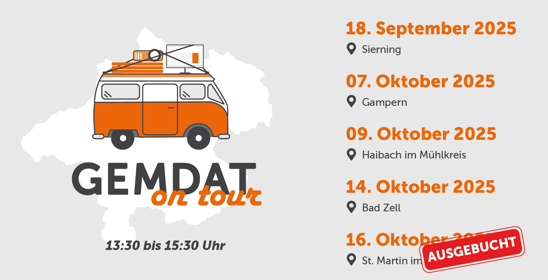 Wir sind mit unserer Veranstaltungsreihe Gemdat on Tour 2025 wieder in Oberösterreich unterwegs und besuchen unsere Kundinnen und Kunden in den unterschiedlichsten Regionen.